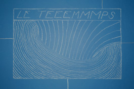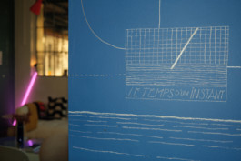 Poetic drawing with multiple paths chalk drawings on a wall inside the Chic Cham design shop in Lausanne.